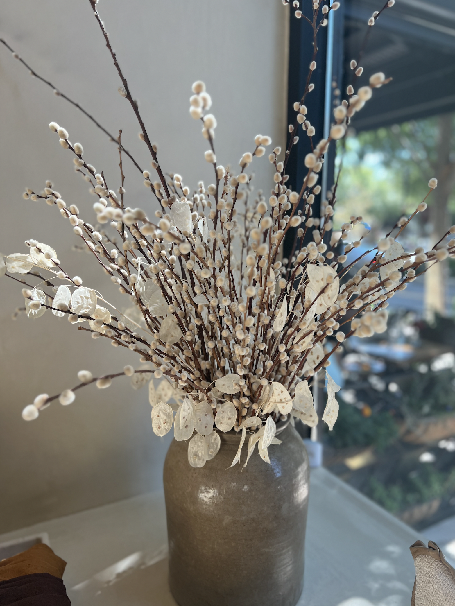 The painting process takes several steps. First, dried florals are properly curated to ensure long-term preservation. Using only the finest quality acrylic paints, each stem or branch is painted by hand, using a fine art brush. During each step of the painting process, florals are dried completely. No aresols or toxic materials are used.